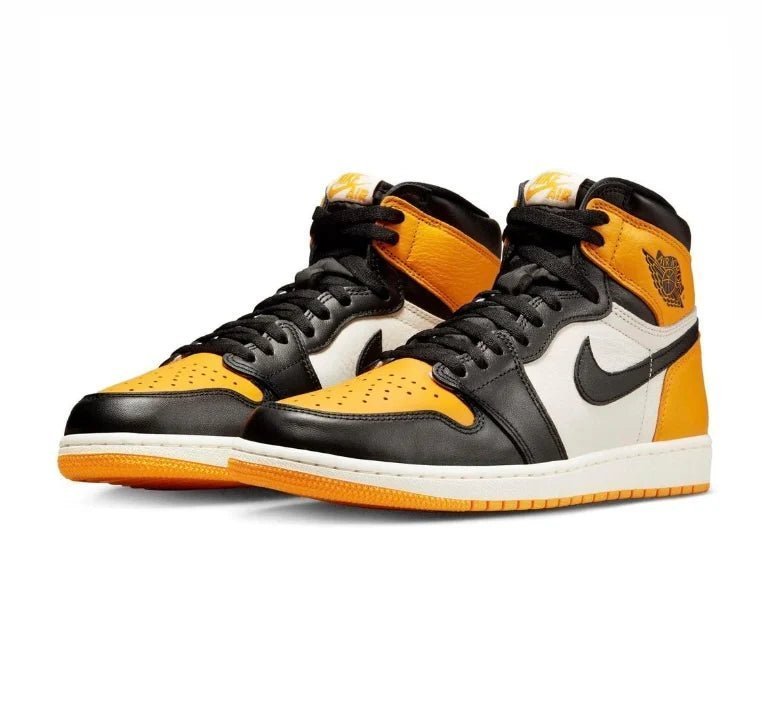 Με ταξί, κίτρινο και λευκό, αυτό το Air Jordan 1 High έχει κλασικό σχέδιο, εμπνευσμένο από το αυθεντικό “Black Toe”. Φορώντας ένα εξ ολοκλήρου δερμάτινο επάνω μέρος, το μαύρο καλύπτει την πλειοψηφία με λευκό στα πλαϊνά πάνελ και κίτρινο ταξί που τυλίγεται γύρω από τον γιακά και τη φτέρνα. Μια μαύρη νάιλον γλώσσα διαθέτει μια λευκή ετικέτα γλώσσας με την επωνυμία OG “Nike Air” σε κίτρινο χρώμα. Οι κίτρινοι πάτοι με μαύρη επωνυμία ολοκληρώνονται με μια λευκή ενδιάμεση σόλα με μαξιλάρι Air και εξωτερική σόλα από καουτσούκ κίτρινη.