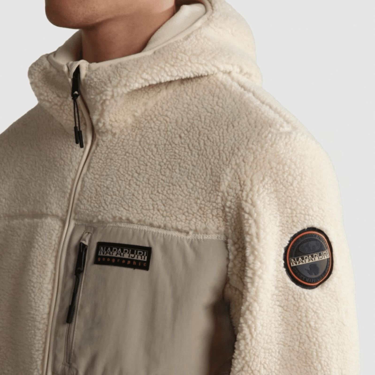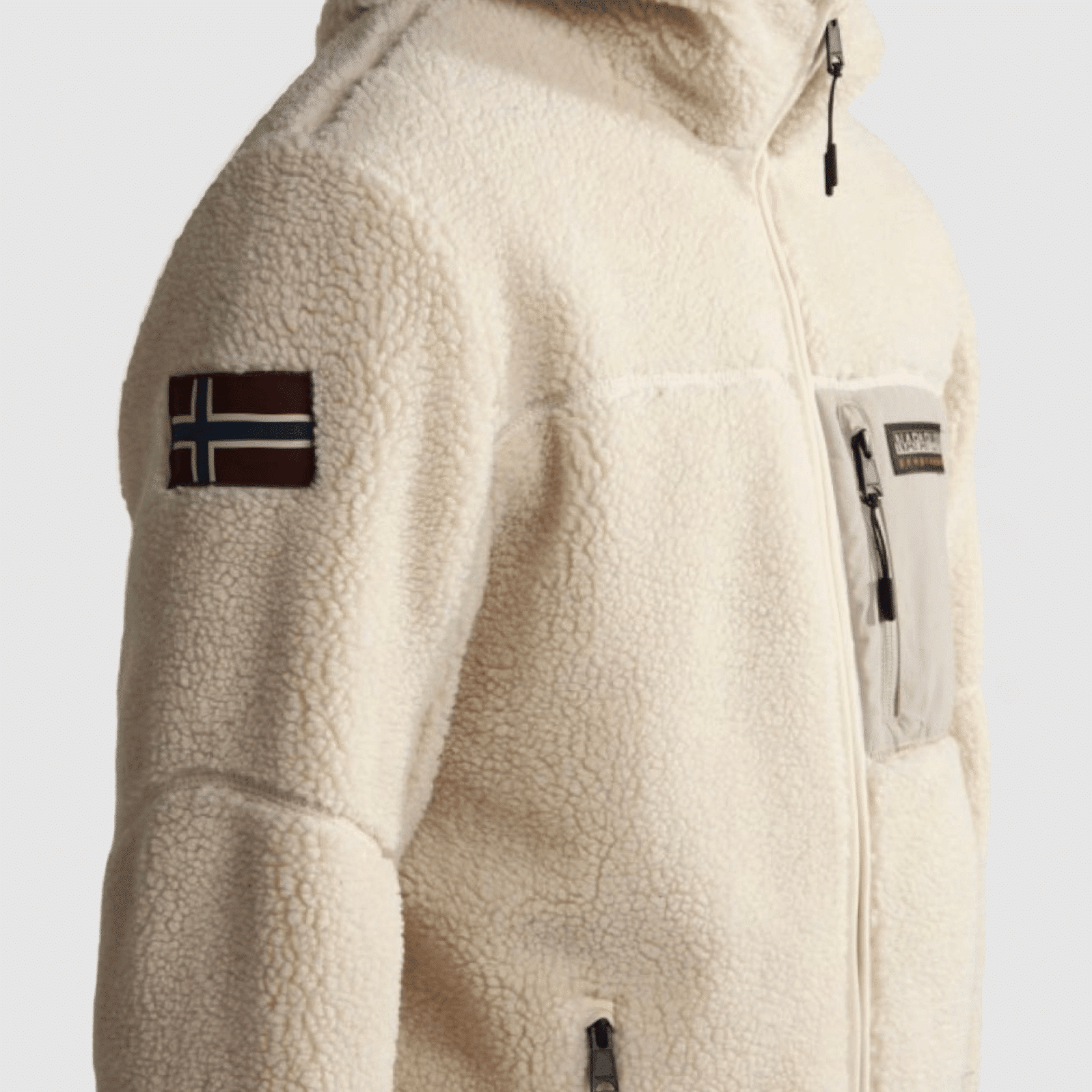 Ζακέτα με κουκούλα, από τη νέα συλλογή του οίκου Napapijri. Το θρυλικό λογότυπο του οίκου Napapijri, βρίσκεται κεντημένο στο μανίκι, σε συνδυασμό με λογότυπο που είναι αφιερωμένο στους Yupiks, μία φυλή που ζει στην Αλάσκα και τη Σιβηρία. Διαθέτει τρεις εξωτερικές τσέπες, οι οποίες κλείνουν με φερμουάρ. Από ζεστό και ταυτόχρονα απαλό sherpa fleece ύφασμα, σε κανονική γραμμή.