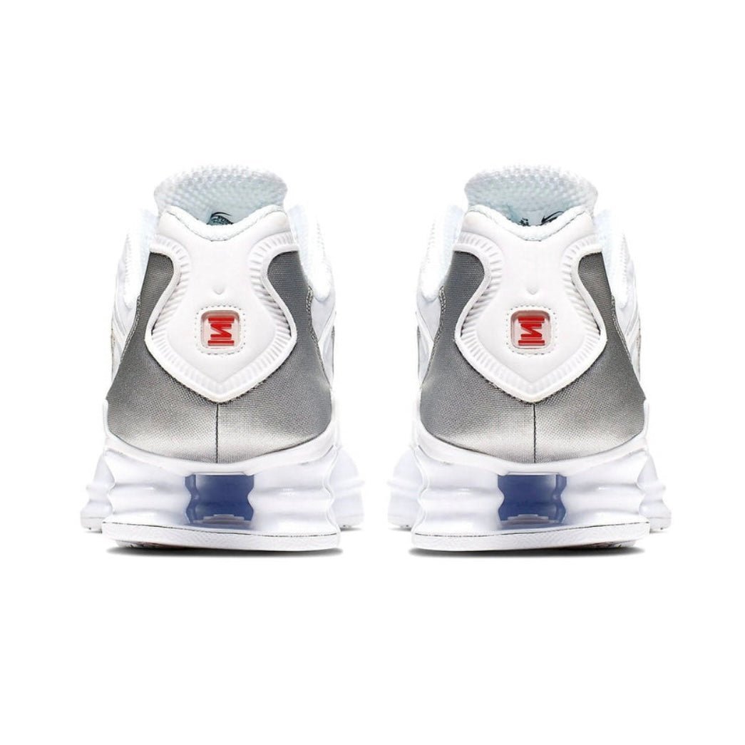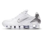 Το Nike Shox TL White Metallic Silver διαθέτει ιβουάρ και ασημί διχτυωτό επάνω μέρος με λευκές συνθετικές επικαλύψεις και μεταλλικές ασημένιες σιλουέτες Swoosh και στις δύο πλευρές. Από εκεί, μαργαριταρένια λευκά αμορτισέρ στην εξωτερική σόλα και γυαλιστερές ασημένιες λωρίδες φτέρνας ολοκληρώνουν το σχέδιο.
